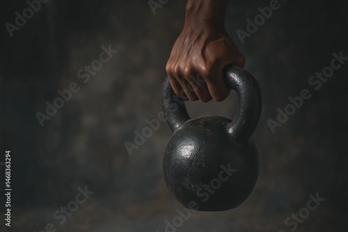 © Constantinos, Fototapeta premium Dark moody image of a hand holding a kettlebell. Strength and fitness concept.