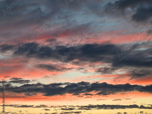 Fototapeta premium Dark Moody Thunder Clouds Sunset Clouds in a Blue Sky as A Skyscape Background