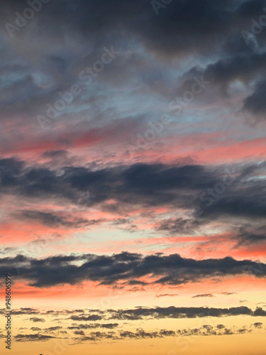 Fototapeta premium Dark Moody Thunder Clouds Sunset Clouds in a Blue Sky as A Skyscape Background