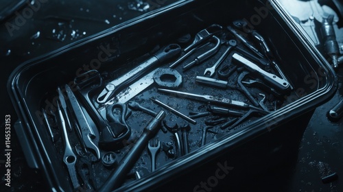 Fototapeta premium Dark Moody Toolbox: A Collection of Steel Tools
