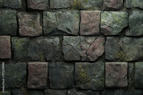 © a muh sakaria, Obraz premium Dark, mossy stone wall texture.