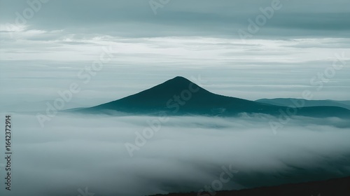 © Hungarian, Naklejka premium Dark mountain peak above a sea of clouds.