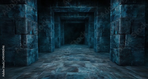 Obraz premium dark mysterious stone hallway