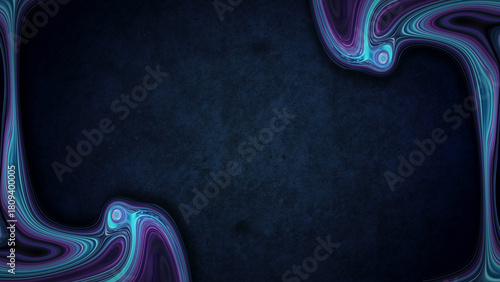 Fototapeta premium Dark Navy Blue Background with Vibrant Neon Swirls and Psychedelic Fluid Art Corners for Modern Technology and Futuristic Graphic Design