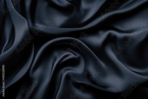 © Amal, Obraz premium Dark navy blue satin fabric with soft, elegant folds and luxurious texture.