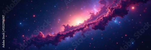 Naklejka premium Dark nebula with glowing stars and galaxies scattered in space, galaxy,...