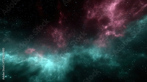 Naklejka premium Dark Nebulae With Teal And Maroon Hues