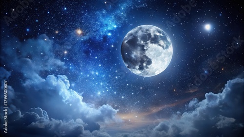 Fototapeta premium Dark Night Sky with Full Moon and Stars , astronomy, darkness, astronomy,...