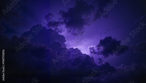 © Anastasiya, Naklejka premium Dark night sky with glowing purple clouds and soft light.