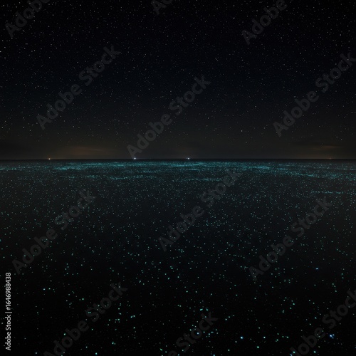 Fototapeta premium Dark Ocean at Night with Sparkling Bioluminescence