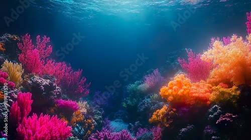 Fototapeta premium Dark ocean glowing with mysterious ruins in underwater scenic design picture