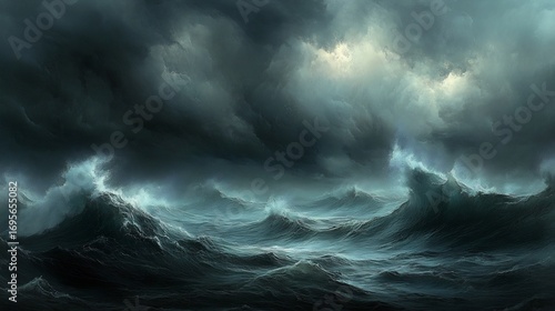 Obraz premium Dark Ocean Waves: A Dramatic Seascape Painting