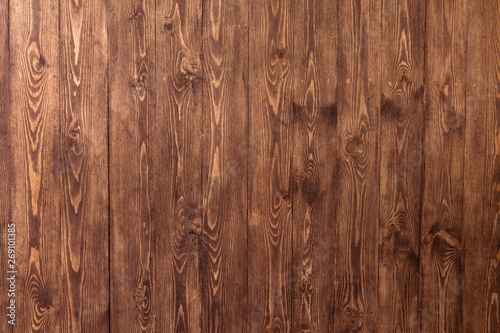 © Georgii, Obraz premium Dark old wooden table texture background top view