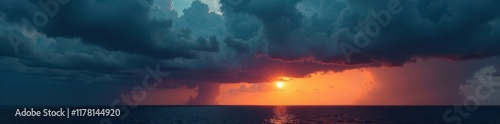 Obraz premium Dark, ominous cloud formations approaching horizon, atmospheric, element