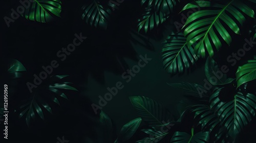 Fototapeta premium Dark pattern featuring exotic leaves in a moody and mysterious atmosphere, tropical, nature, shadow