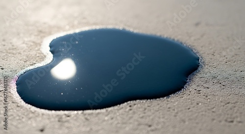 © yolanda, Obraz premium Dark Puddle on Concrete Surface with Bright Reflection.