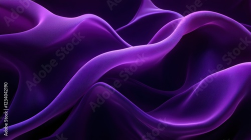 © Aina Tahir, Fototapeta premium Dark purple background with flowing, glowing purple wave lines that create a rich, luxurious texture, with space for text at the center.