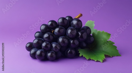 Fototapeta premium Dark purple grapes, vibrant, glossy, on purple background