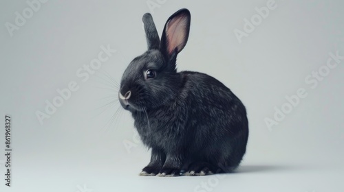 © TheWaterMeloonProjec, Obraz premium Dark Rabbit Against White Surface