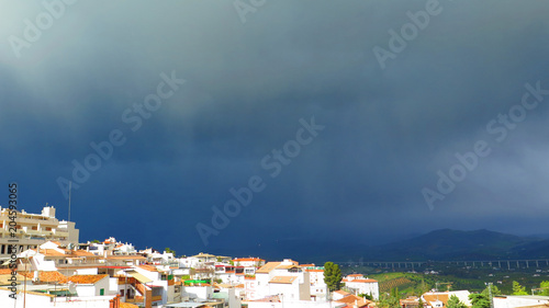 © johnnywalker61, Fototapeta premium Dark rain clouds approaching village