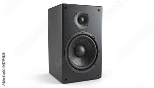 © ramangan, Obraz premium Dark, rectangular audio speaker against a white background.