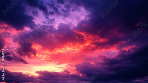 Fototapeta premium Dark red and purple sunset clouds glowing in the twilight sky, transitioning...