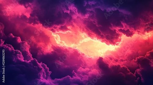 Fototapeta premium Dark red and purple sunset clouds glowing in the twilight sky, transitioning...