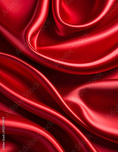 © Studio-M, Obraz premium Dark red glossy silk cloth texture close view background