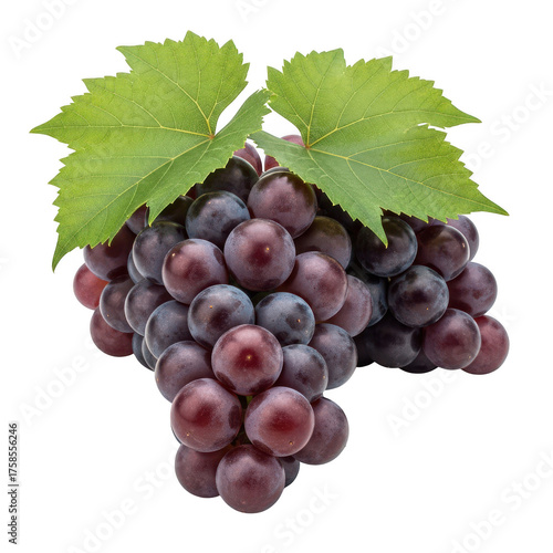 © Abir, Fototapeta premium Dark Red Grapes with Green Leaves on Background fruit food