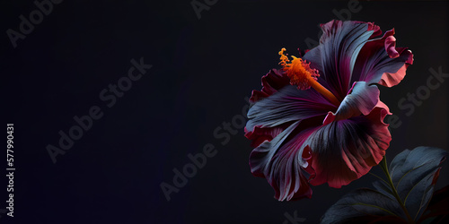 © Leaf, Obraz premium dark red hibiscus flower black background generative ai