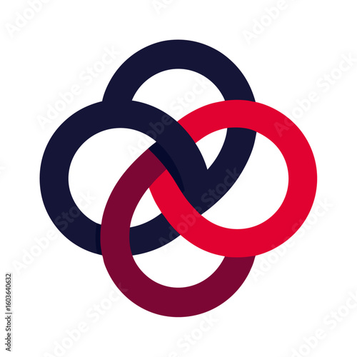 © Pixel Motion Lab, Obraz premium Dark Red Navy Interlocking Rings Partnership Merger Business Vector