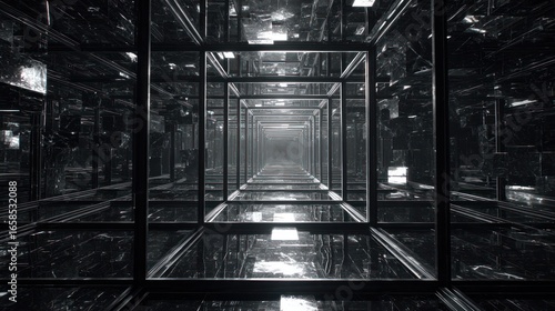 © Vinaida, Fototapeta premium Dark, reflective, square tunnel