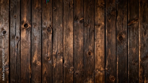 © ibhonk, Naklejka premium Dark rich vertical wooden planks form a textured background surface
