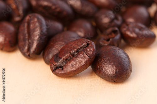 Obraz premium Dark roasted coffee beans background ,close up