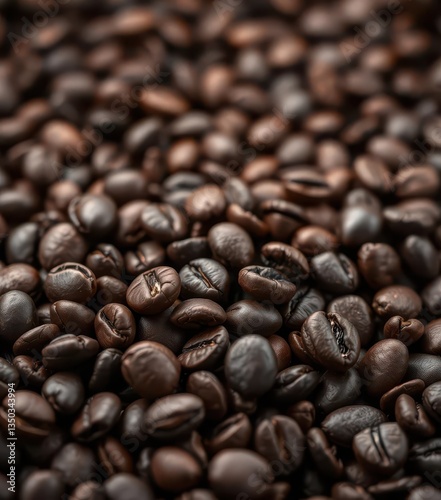 Obraz premium Dark roasted coffee beans close-up, rich aroma, close-up, energy