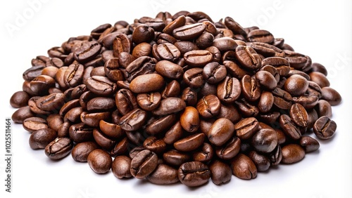 © Sayfar, Fototapeta premium Dark roasted coffee beans isolated on white background low angle view