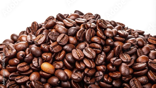 © Sayfar, Obraz premium Dark roasted coffee beans on white background