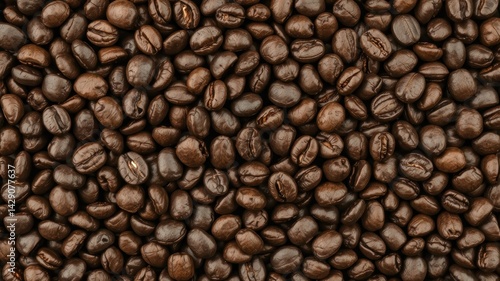 © STOCKTIFY, Obraz premium Dark Roasted Coffee Beans Spread Across a Surface for Background Use