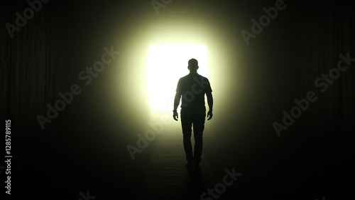 © chaowalit, Obraz premium Dark room silhouette approaching light