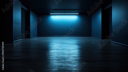 © gufron, Fototapeta premium Dark Room with Blue Neon Light