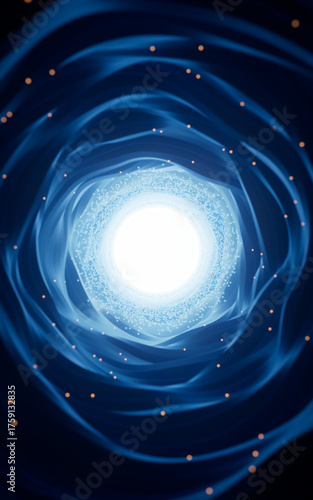 © Vink Fan, Fototapeta premium Dark round tunnel with glowing neon lines, 3d rendering.