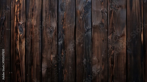 Fototapeta premium Dark, rustic wood background. Deep brown tones and vertical planks create a...