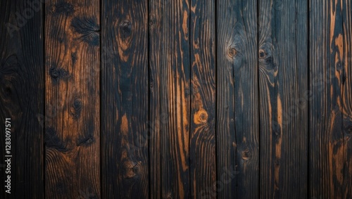 Naklejka premium Dark rustic wood texture background showcasing a weathered surface with rich...