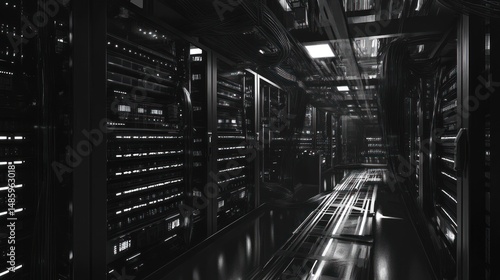 Obraz premium Dark server room interior
