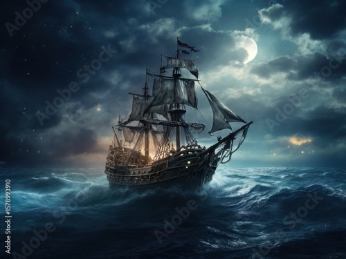 © Qhi-Qho Creative Std, Fototapeta premium Dark ship on stormy night sea