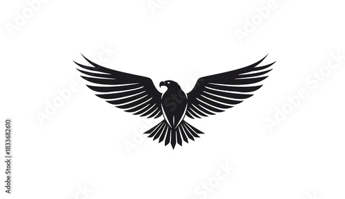 Naklejka premium Dark silhouette of a majestic eagle with wings spread wide isolated on...