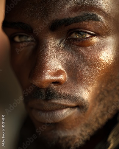 Obraz premium Dark-skinned man’s eyebrows with a thick natural shape. No grooming or makeup.
