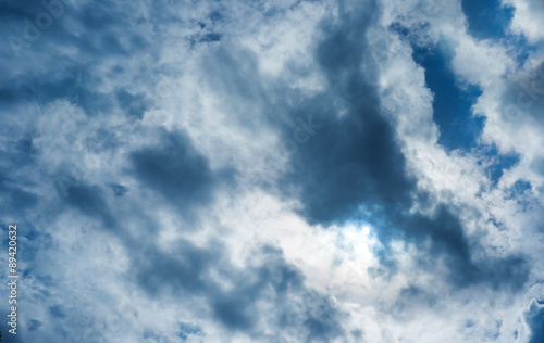 Obraz premium Dark sky before rain and sun behind cloud