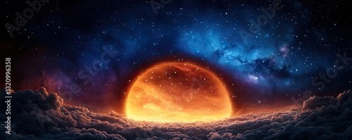 Obraz premium Dark sky idea. A stunning cosmic scene featuring a glowing orange sun rising...