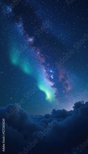 © Atittaya, Fototapeta premium Dark sky with sparkling stars and soft aurora glow, constellation, galaxy